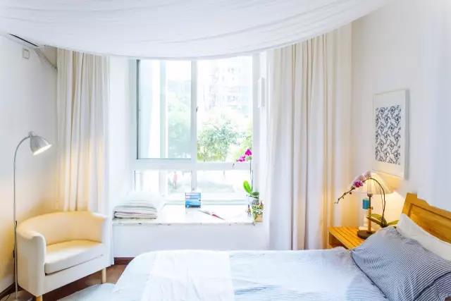 對於飄窗比較大的戶型,可以選擇這種方式,窗簾裝在飄窗中,不占用臥室的麵積,因此可以讓整個臥室看起來更加寬敞、大氣。